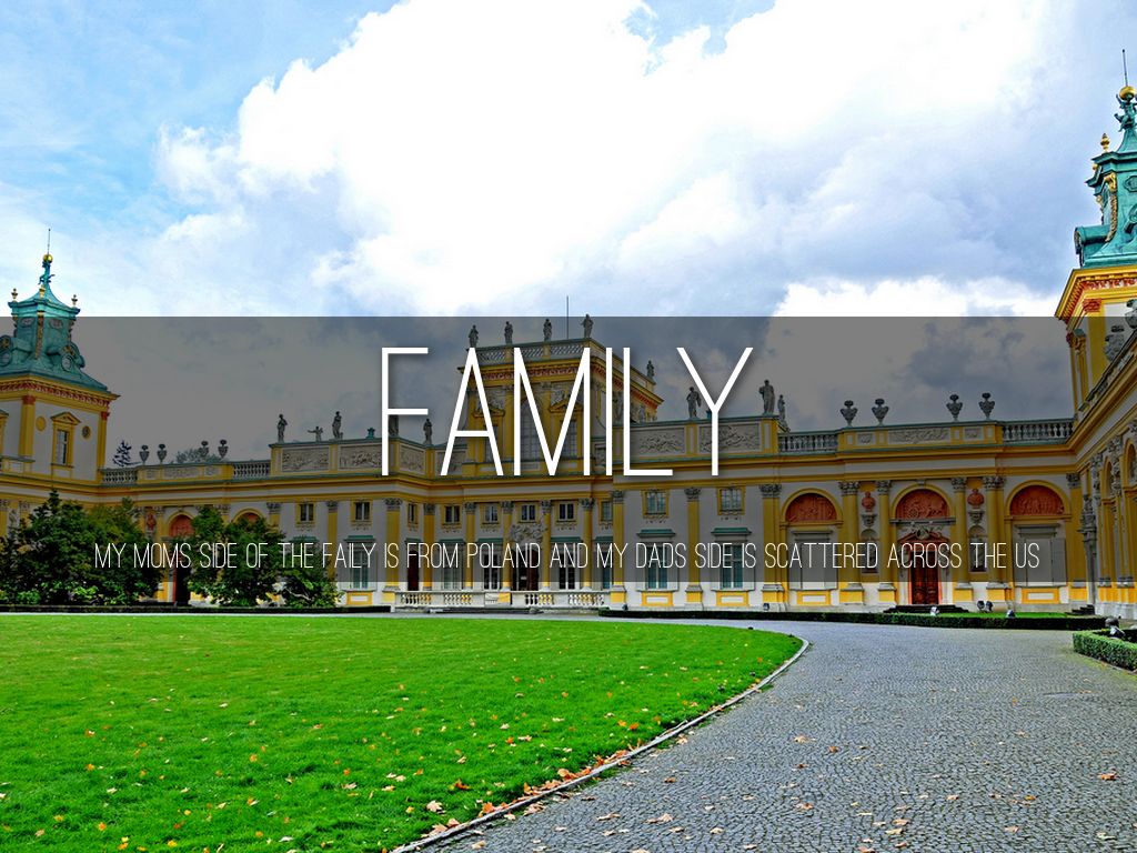 MY MOMS SIDE OF THE FAILY IS FROM POLAND AND MY DADS SIDE IS SCATTERED Across THE US