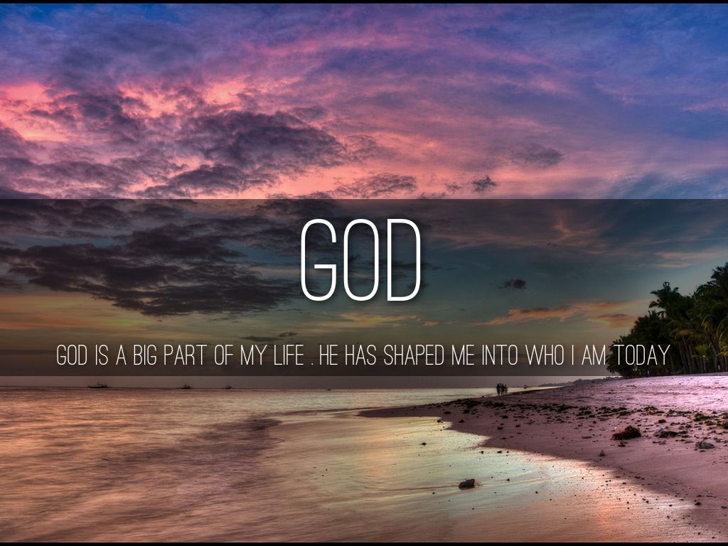 GOD IS A BIG PART OF MY LIFE . HE HAS SHAPED ME INTO WHO I AM TODAY