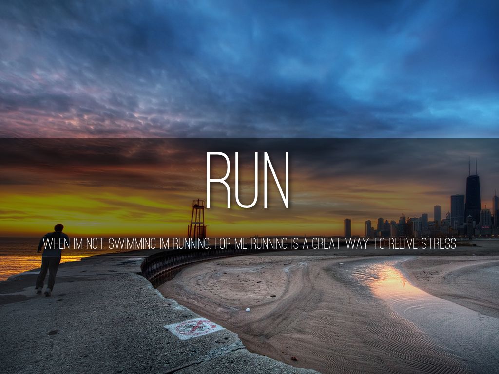 WHEN IM NOT SWIMMING IM RUNNING, FOR ME RUNNING IS A GREAT WAY TO RELIVE STRESS