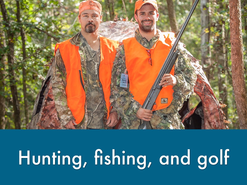 Hunting, fishing, and golf