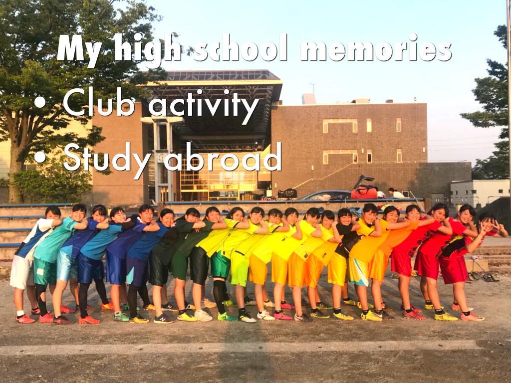 First, tell you my club activity. When I was a high school student, I belong to lacrosse club. Lacrosse is minor sport,so I didn’t know how to play lacrosse. But it is so exciting to play lacrosse.