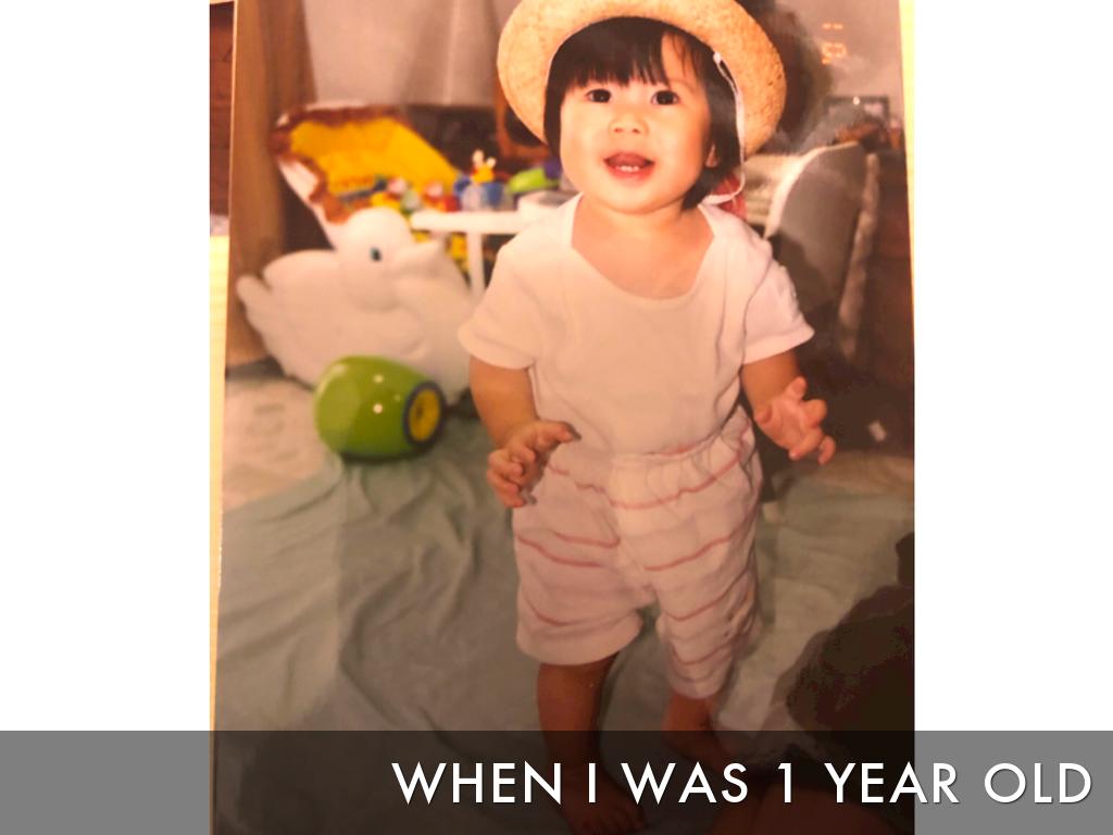 First,I’d like to talk about my childhood. Look at this picture,this is me when I was six years old. This is doing festival,my class present Mermaid and I tried to do Mermaid.