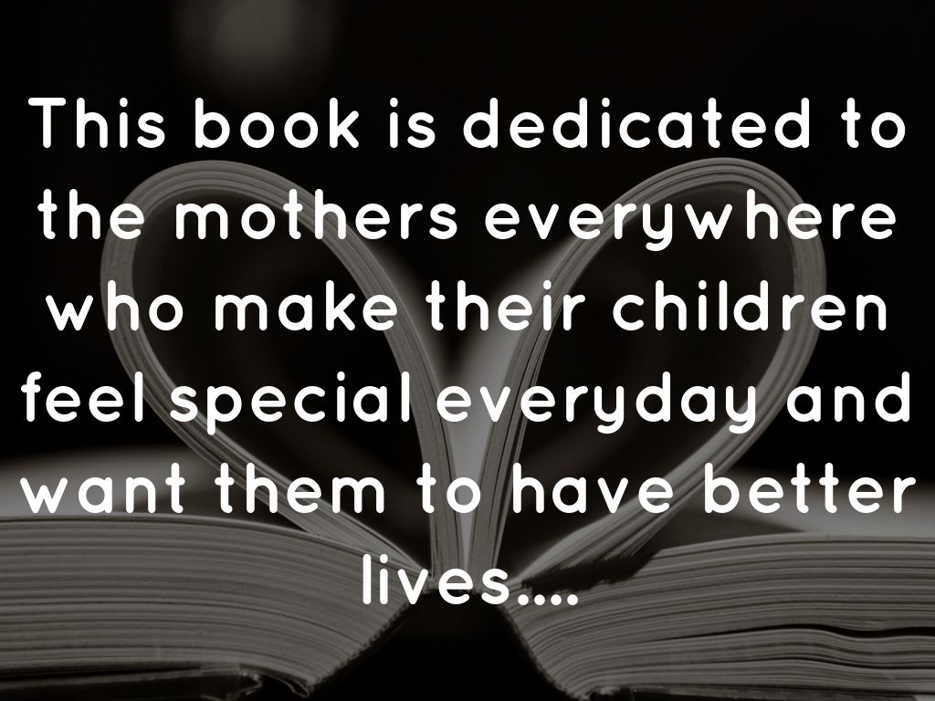 This book is dedicated to the mothers everywhere who make their children feel special everyday and want them to have better lives....