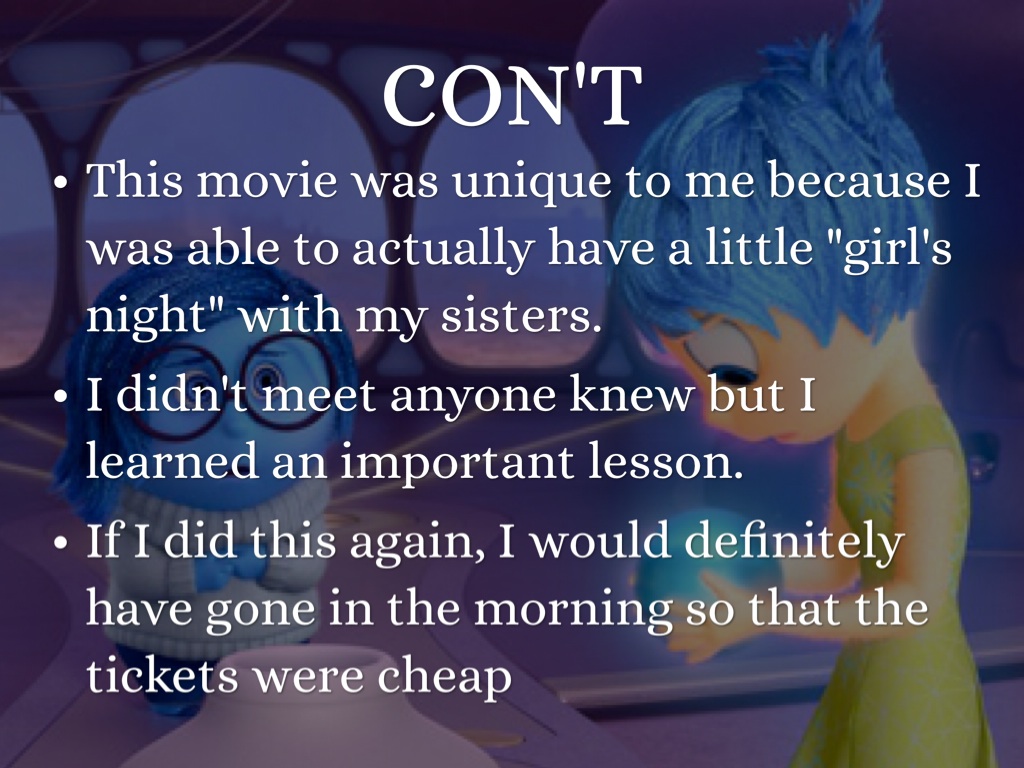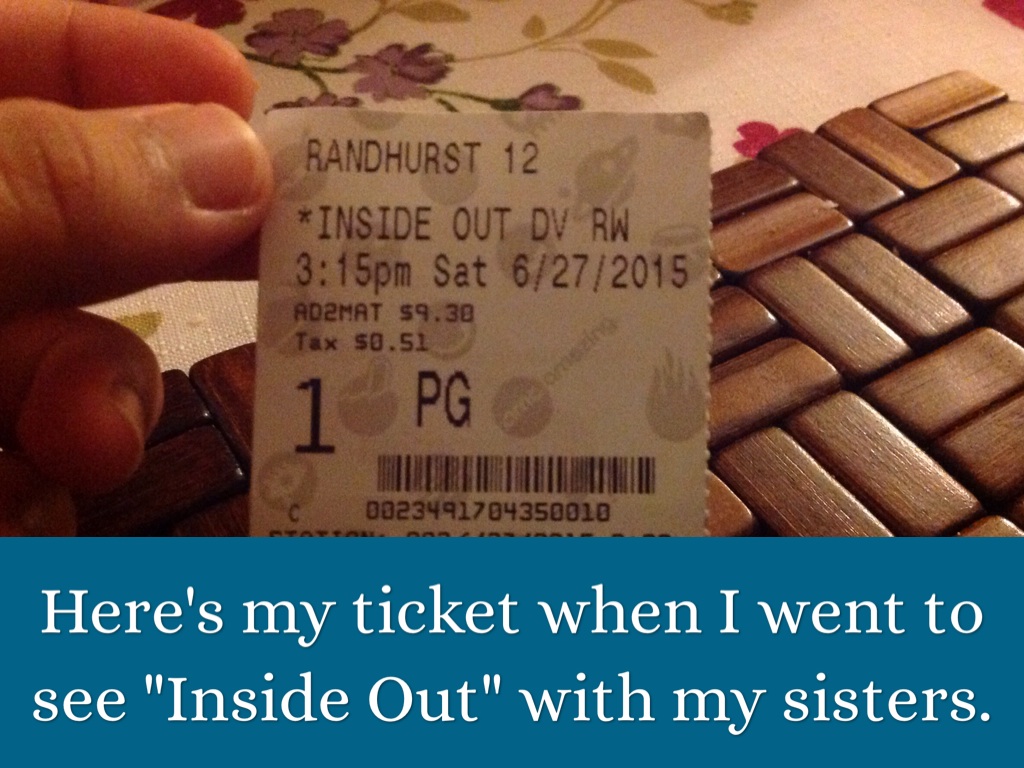 Here's my ticket when I went to see "Inside Out" with my sisters.