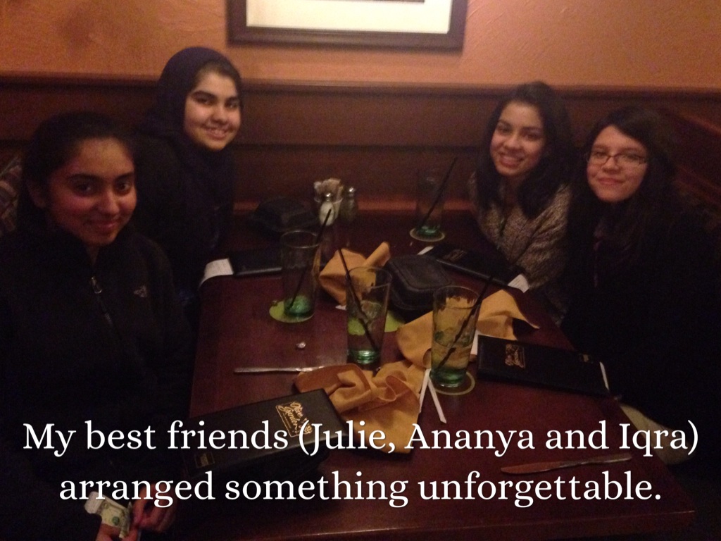 My best friends (Julie, Ananya and Iqra) arranged something unforgettable.
