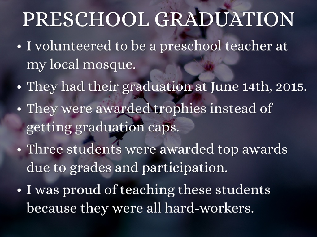 • I will never forget this experience because in the future, it will be a great reference for me to look at when I'm teaching.