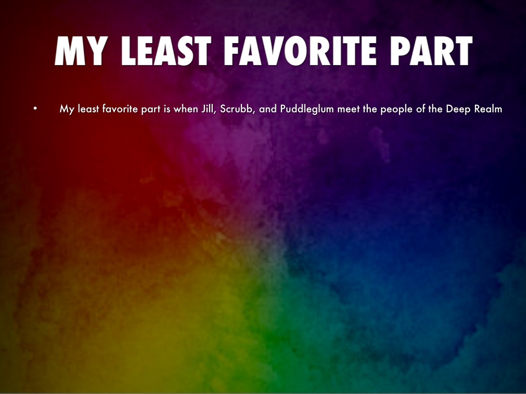 - My least favorite part is when Jill, Scrubb, and Puddleglum meet the people of the Deep Realm