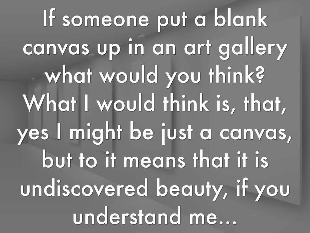 What I would think is, that, yes I might be just a canvas, but to it means that it is undiscovered beauty, if you understand me...