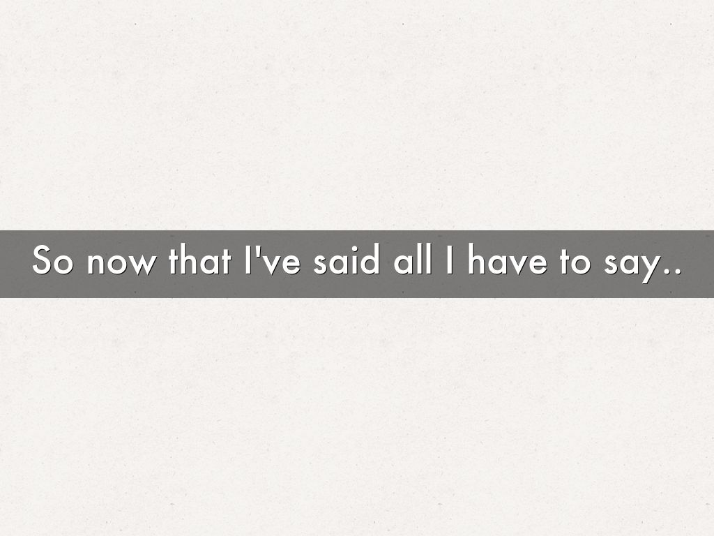 So now that I've said all I have to say..