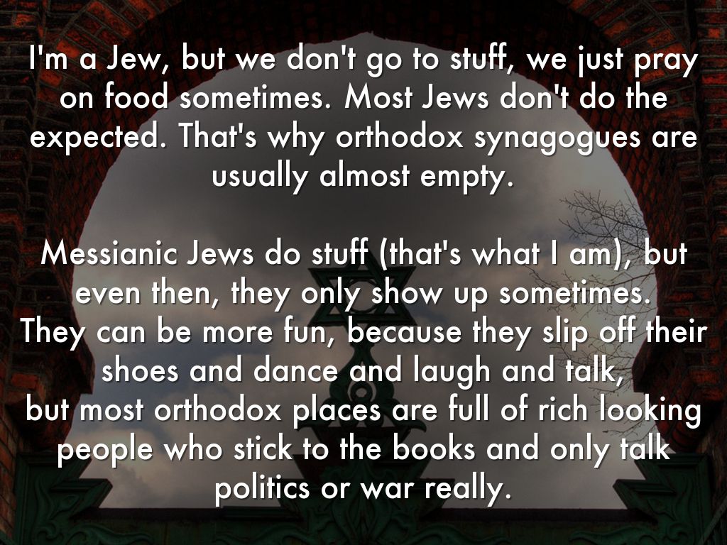 I'm a Jew, but we don't go to stuff, we just pray on food sometimes. Most Jews don't do the expected. That's why orthodox synagogues are usually almost empty.