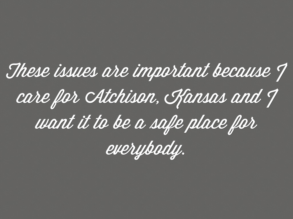These issues are important because I care for Atchison, Kansas and I want it to be a safe place for everybody.