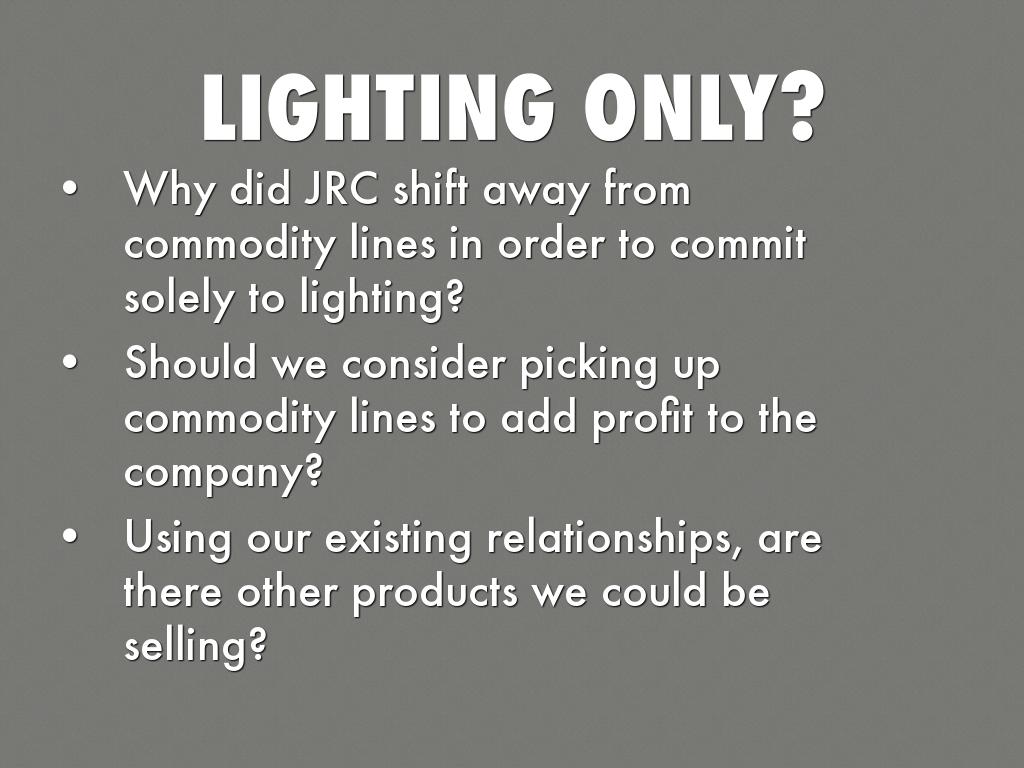 Why did JRC shift away from commodity lines in order to commit solely to lighting?