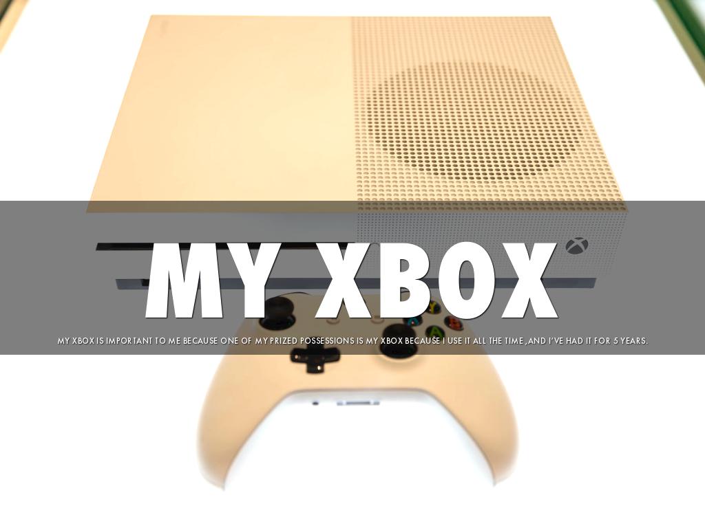 MY XBOX IS IMPORTANT TO ME BECAUSE ONE OF MY PRIZED POSSESSIONS IS MY XBOX BECAUSE I USE IT ALL THE TIME ,AND I’VE HAD IT FOR 5 YEARS.