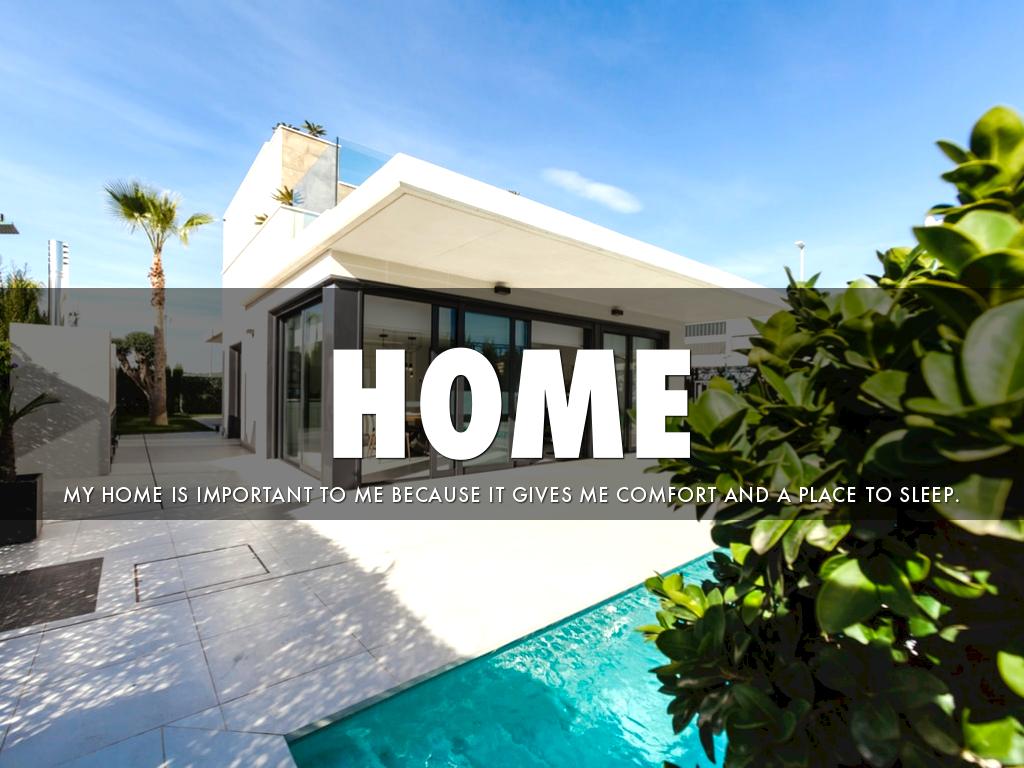 MY HOME IS IMPORTANT TO ME BECAUSE IT GIVES ME COMFORT AND A PLACE TO SLEEP.