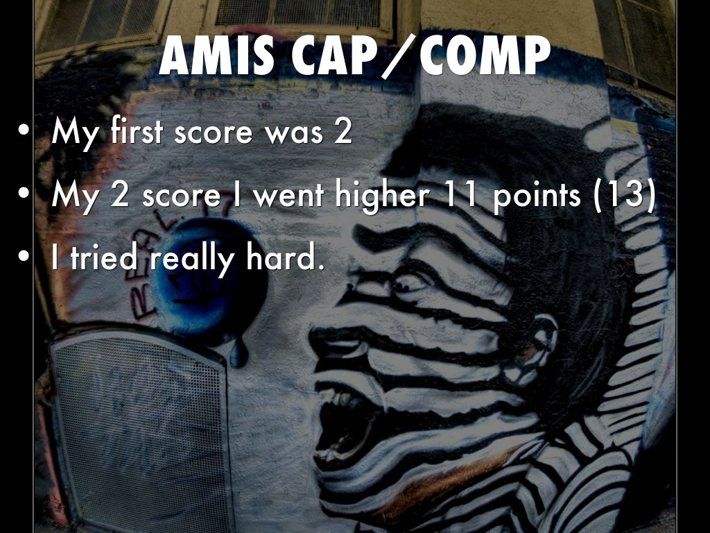 In the begining of the year in my AIMS CAP/COMP my score was 2 then in the end of the year i went up 11 points witch was 13.