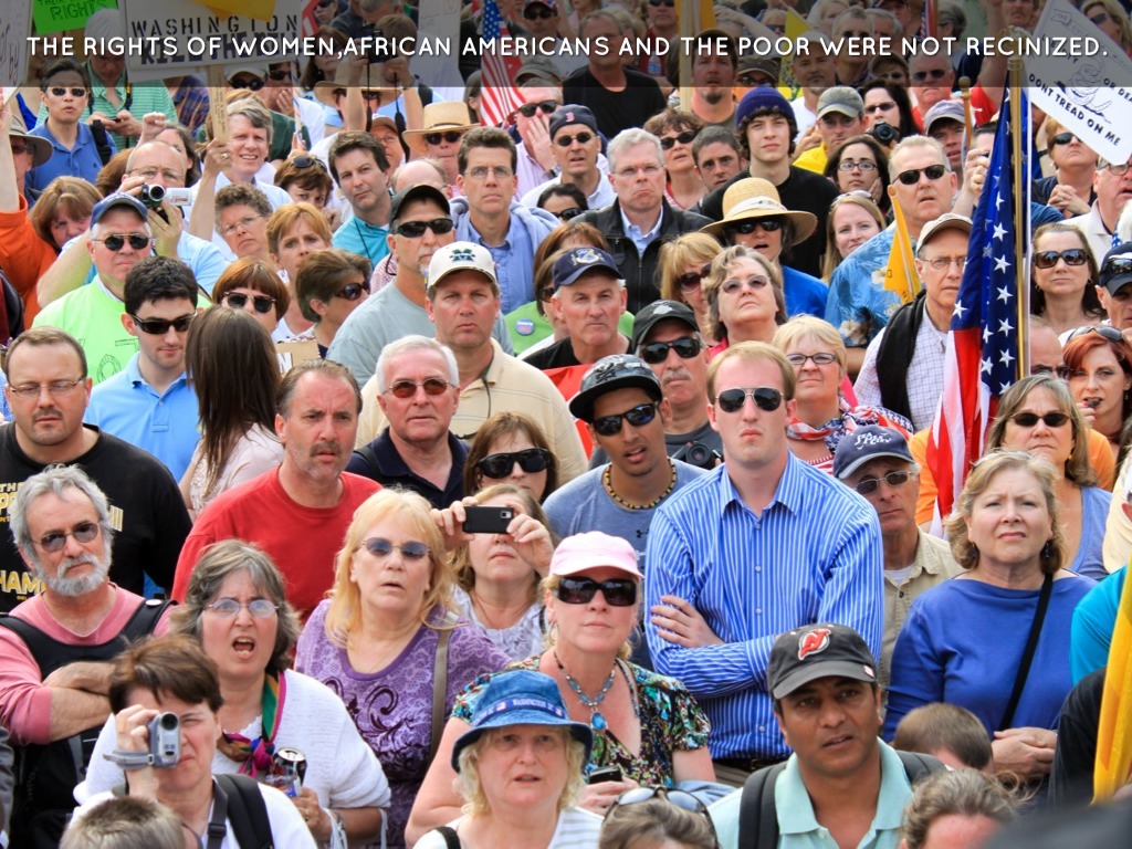 THE RIGHTS OF WOMEN,AFRICAN AMERICANS AND THE POOR WERE NOT RECINIZED.