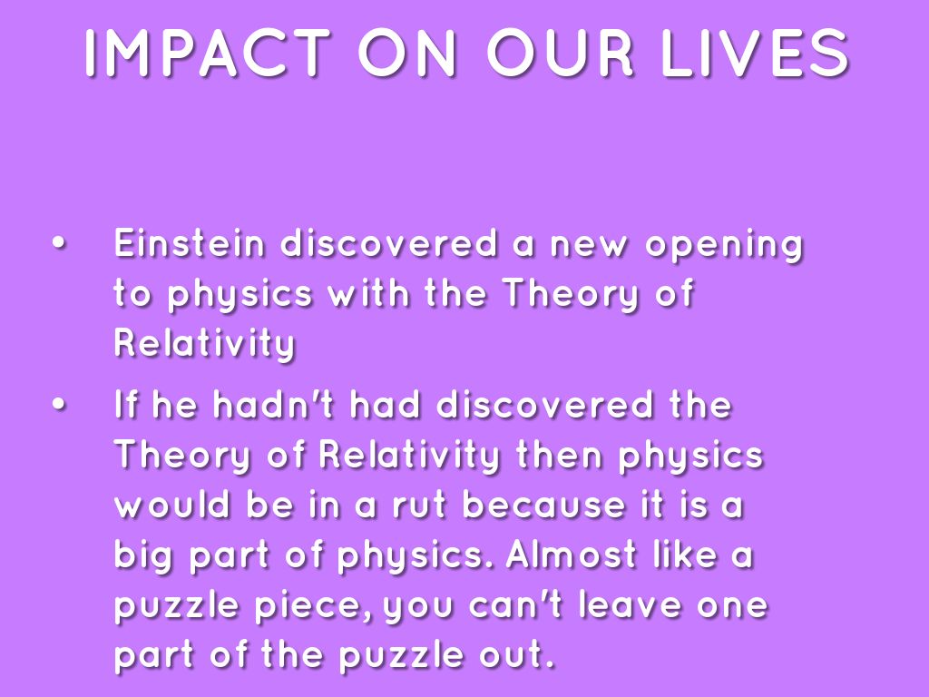If he hadn't had discovered the Theory of Relativity then physics would be in a rut because it is a big part of physics. Almost like a puzzle piece, you can't leave one part of the puzzle out.