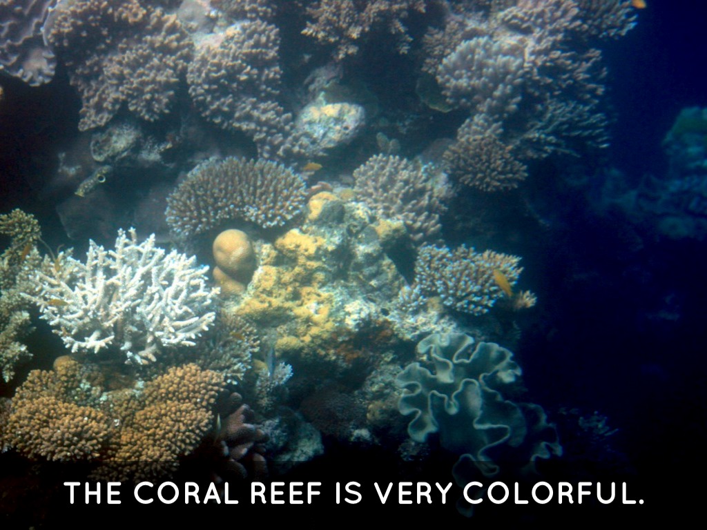 THE CORAL REEF IS VERY COLORFUL.