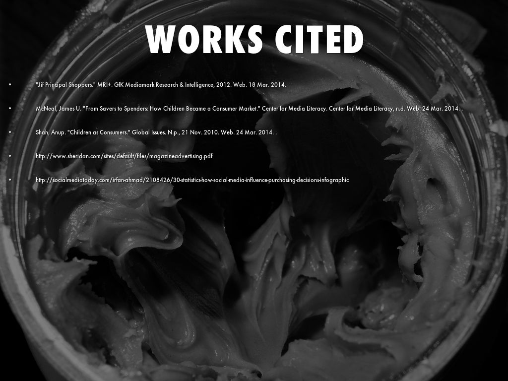 McNeal, James U. "From Savers to Spenders: How Children Became a Consumer Market." Center for Media Literacy. Center for Media Literacy, n.d. Web. 24 Mar. 2014. .