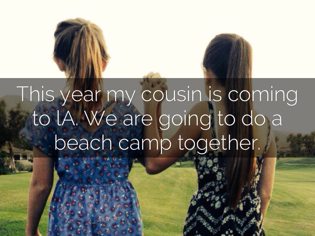 This year my cousin is coming to lA. We are going to do a beach camp together.