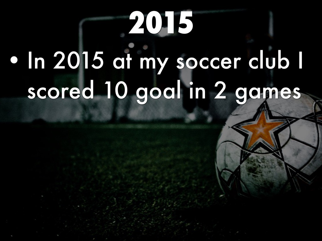 In 2015 at my soccer club I scored 10 goal in 2 games