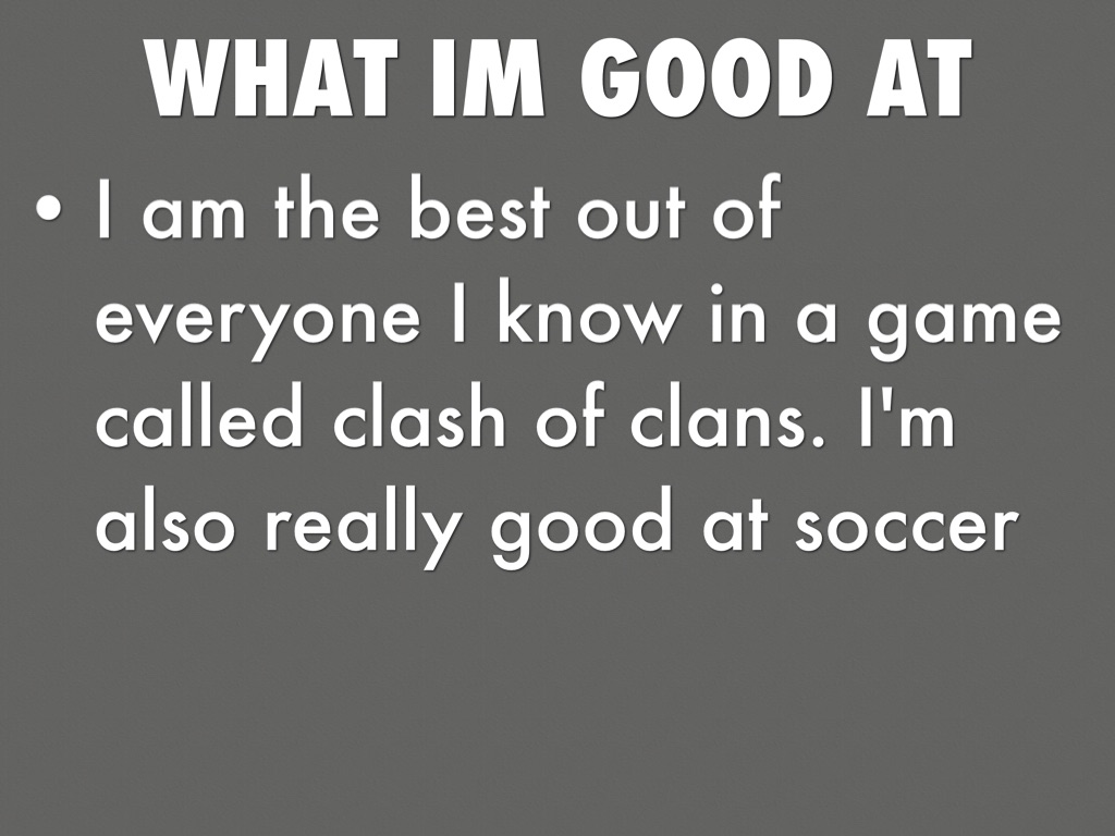 I am the best out of everyone I know in a game called clash of clans. I'm also really good at soccer