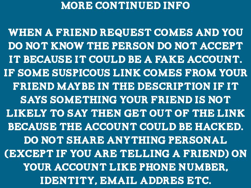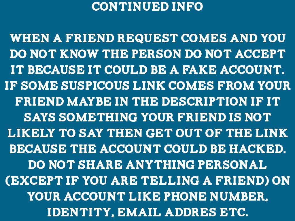 When a friend request comes and you do not know the person do not accept it because it could be a fake account.