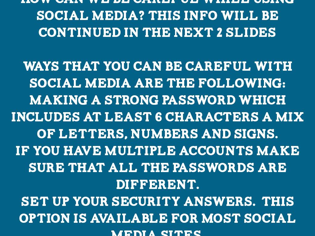 How can we be careful while using social media? This info will be continued in the next 2 slides