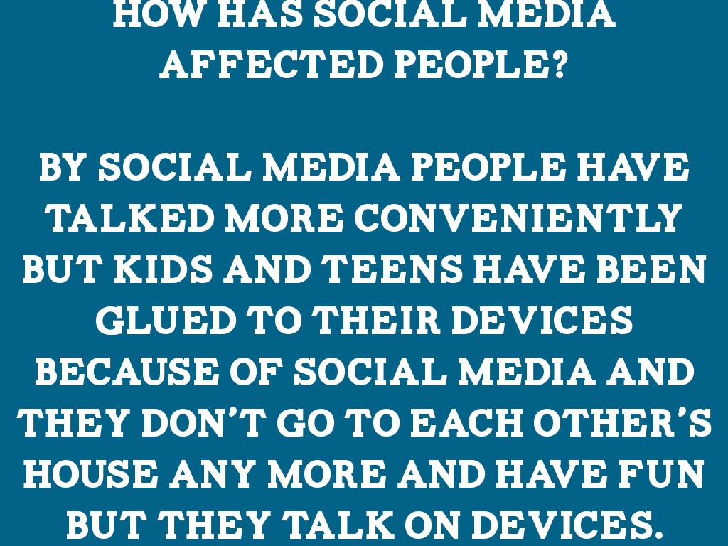 By social media people have talked more conveniently but kids and teens have been glued to their devices because of social media and they don’t go to each other’s house any more and have fun but they talk on devices.