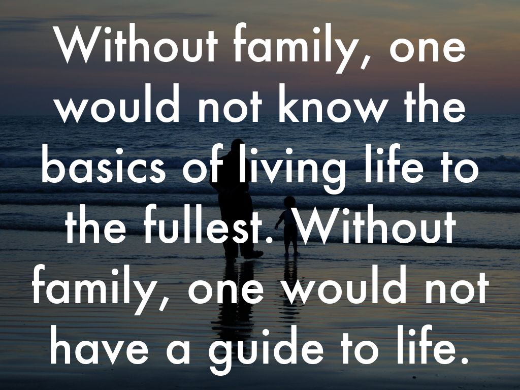 Without family, one would not know the basics of living life to the fullest. Without family, one would not have a guide to life.