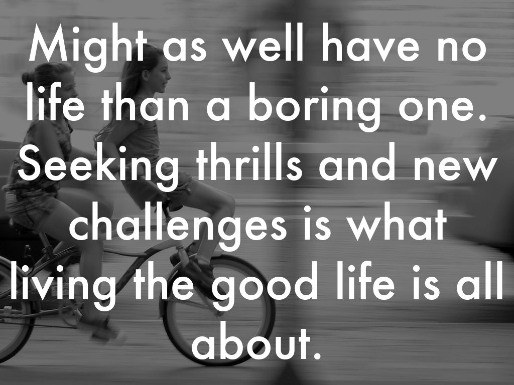 Might as well have no life than a boring one. Seeking thrills and new challenges is what living the good life is all about.