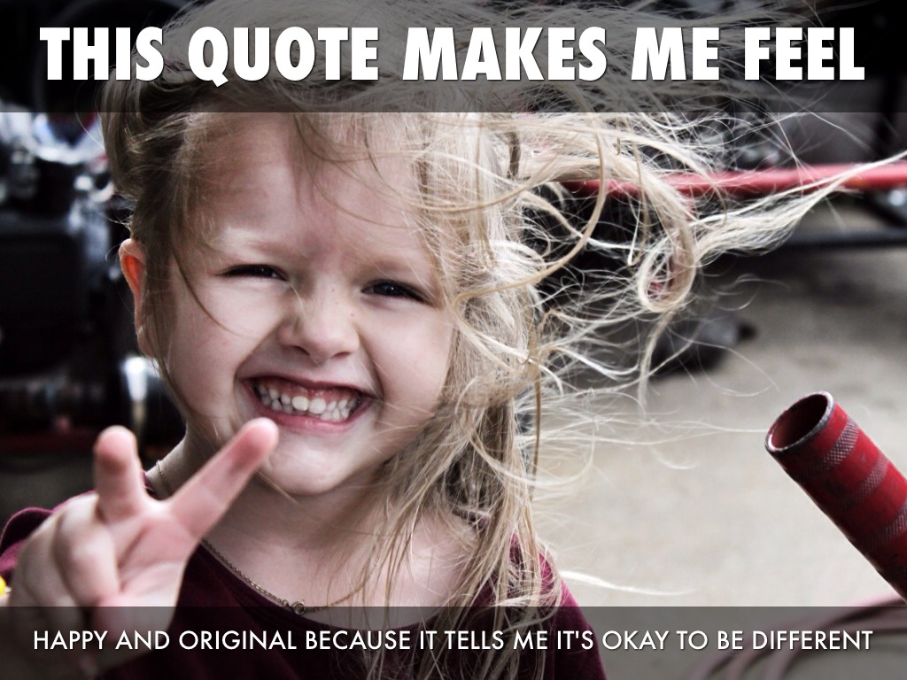 HAPPY AND ORIGINAL BECAUSE IT TELLS ME IT'S OKAY TO BE DIFFERENT