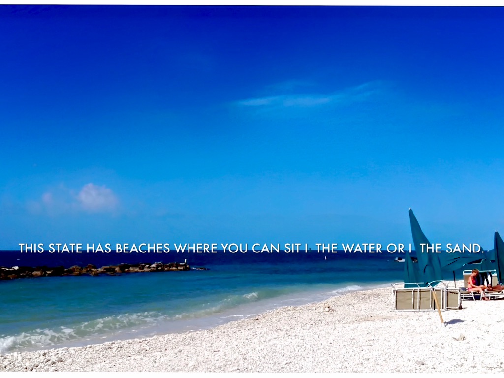 THIS STATE HAS BEACHES WHERE YOU CAN SIT I THE WATER OR I THE SAND.