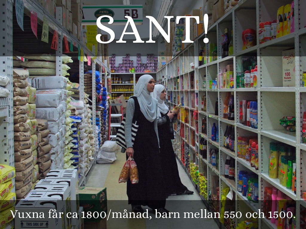 Vuxna får ca 1800/månad, barn mellan 550 och 1500.