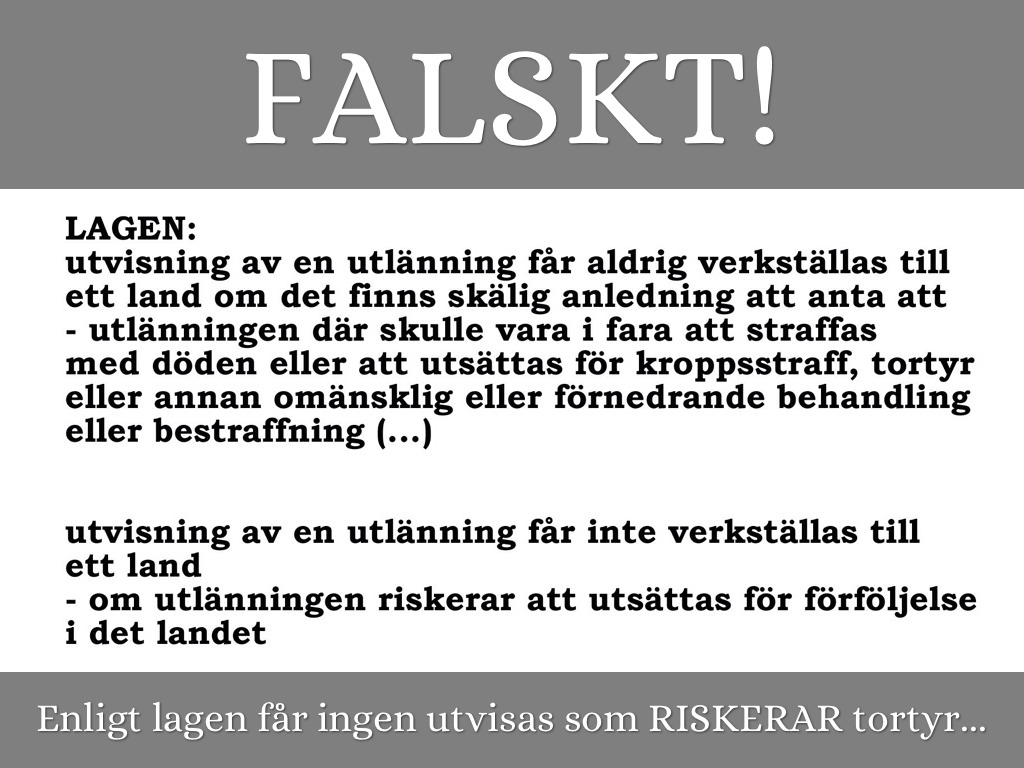 Enligt lagen får ingen utvisas som RISKERAR tortyr...