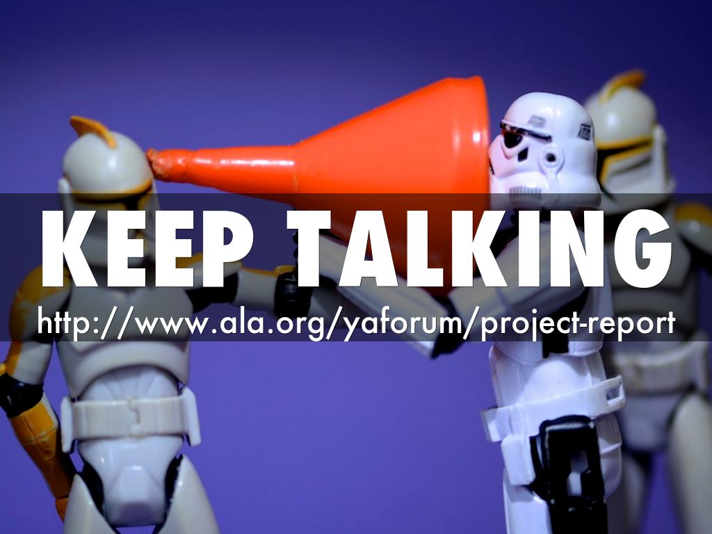 Included in-person summit in Chicago Midwinter last year and YALSA-convened virtual town halls and series of hangouts and conversations on connected