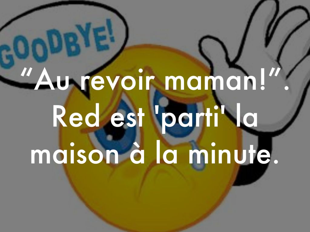 “Au revoir maman!”. Red est 'parti' la maison à la minute.