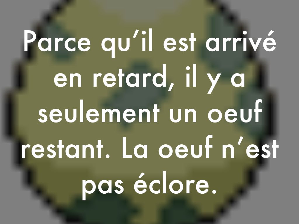 Parce qu’il est arrivé en retard, il y a seulement un oeuf restant. La oeuf n’est pas éclore.