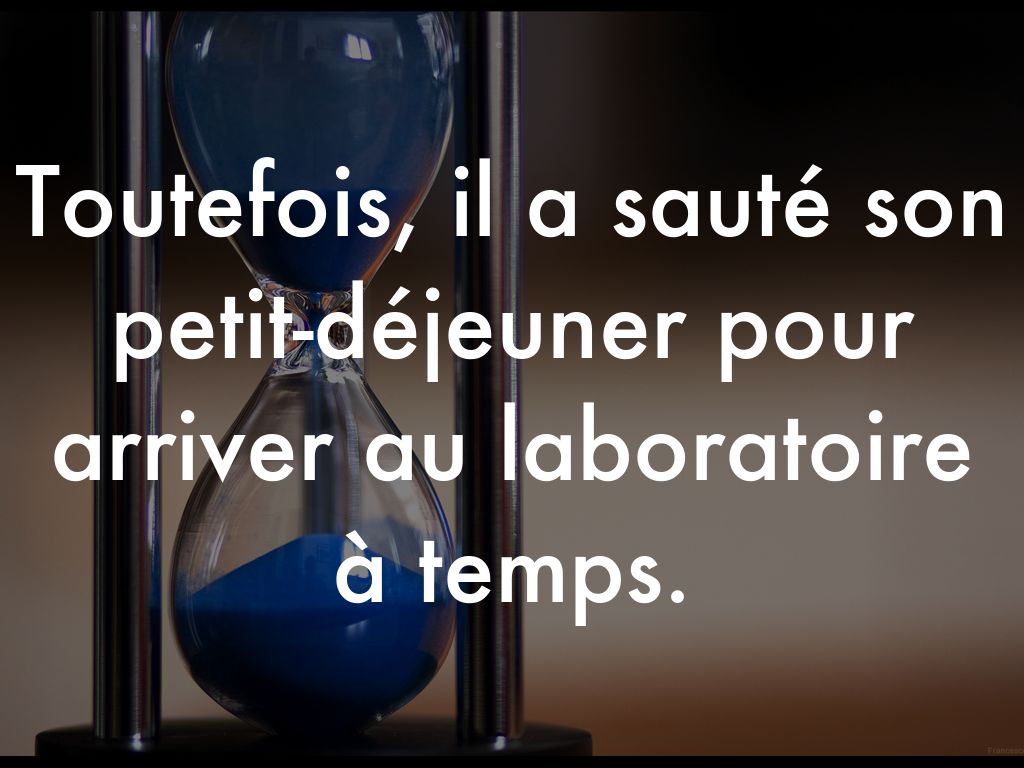 Toutefois, il a sauté son petit-déjeuner pour arriver au laboratoire à temps.