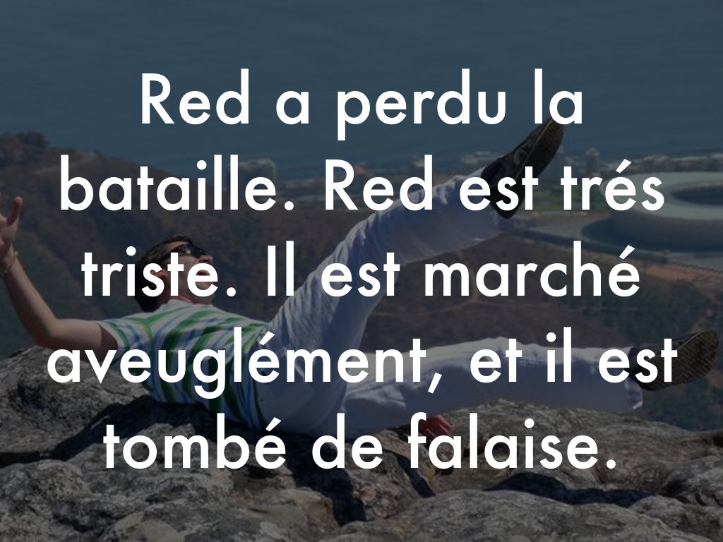 Red a perdu la bataille. Red est trés triste. Il est marché aveuglément, et il est tombé de falaise.
