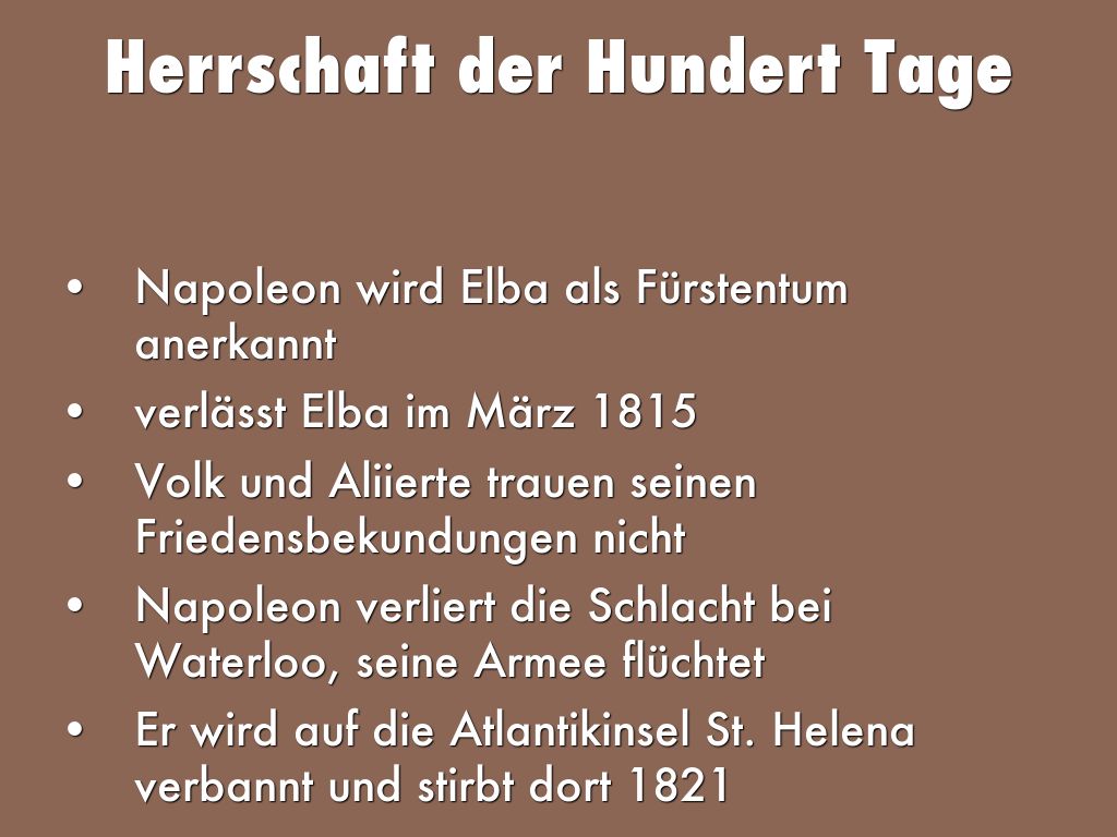 - Er wird auf die Atlantikinsel St. Helena verbannt und stirbt dort 1821