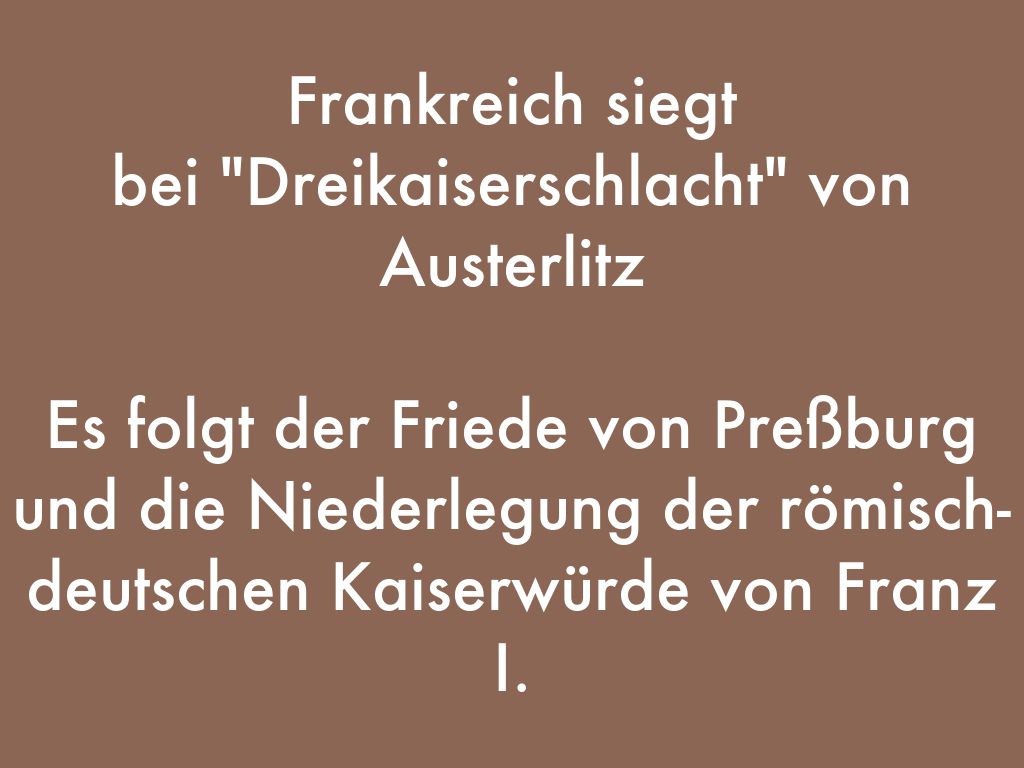Es folgt der Friede von Preßburg und die Niederlegung der römisch-deutschen Kaiserwürde von Franz I.