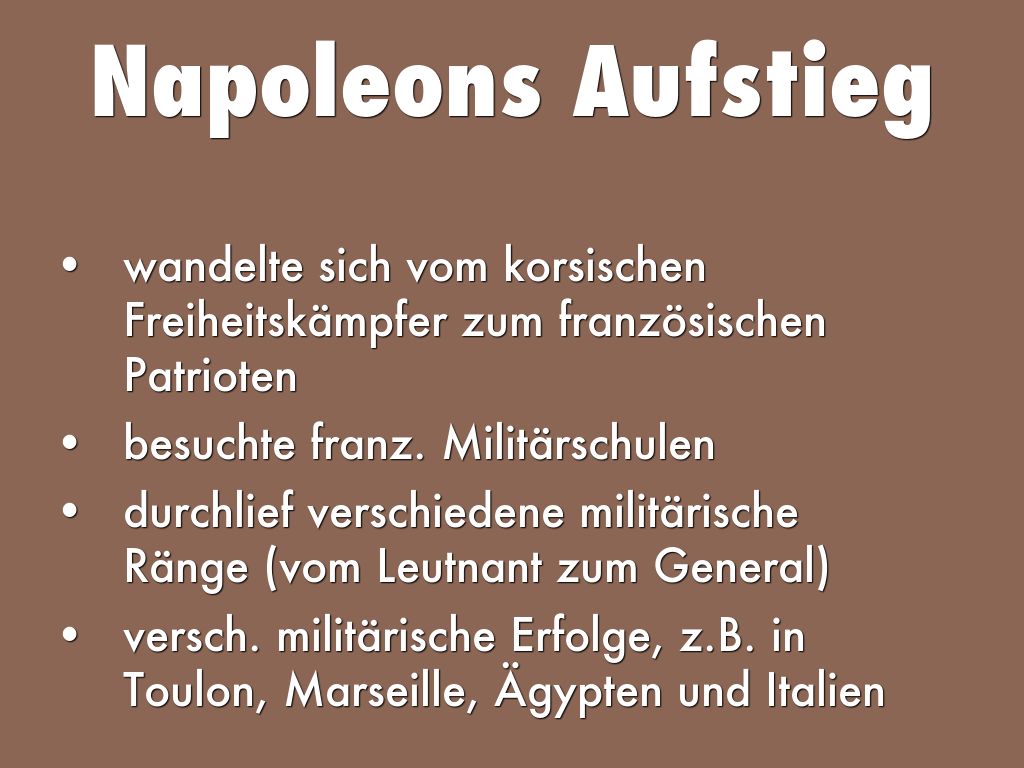 - versch. militärische Erfolge, z.B. in Toulon, Marseille, Ägypten und Italien