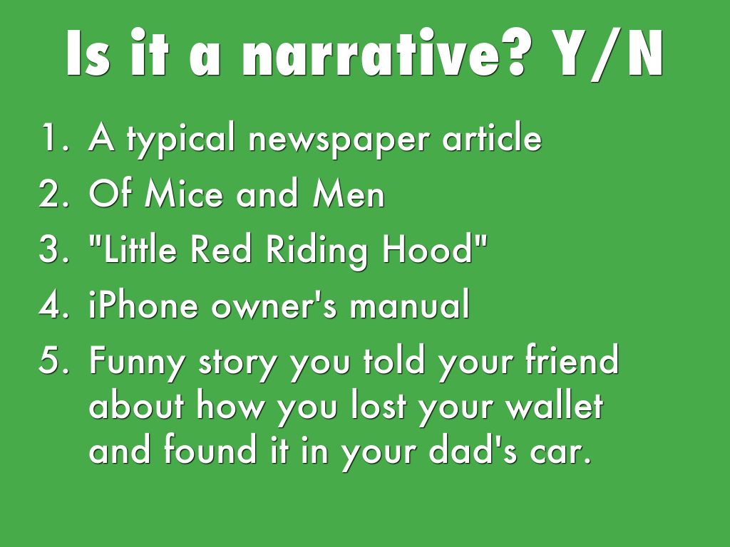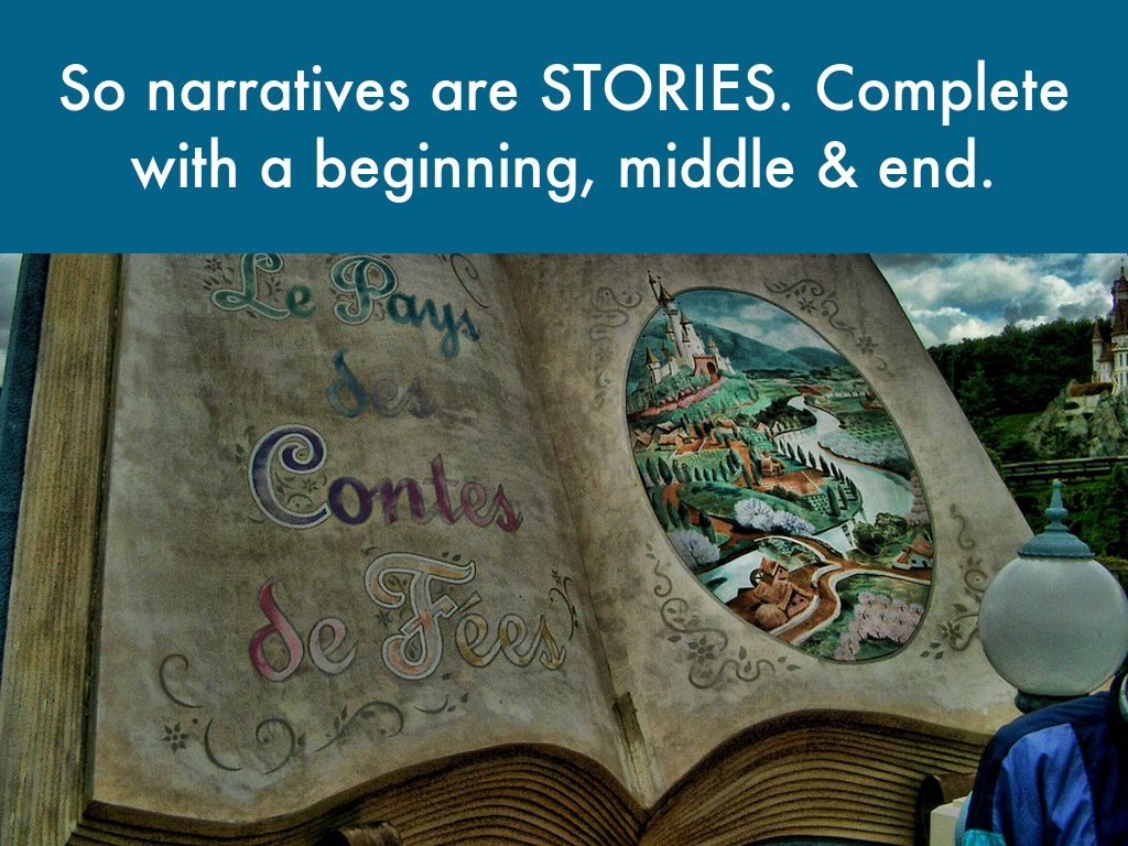 So narratives are STORIES. Complete with a beginning, middle & end.