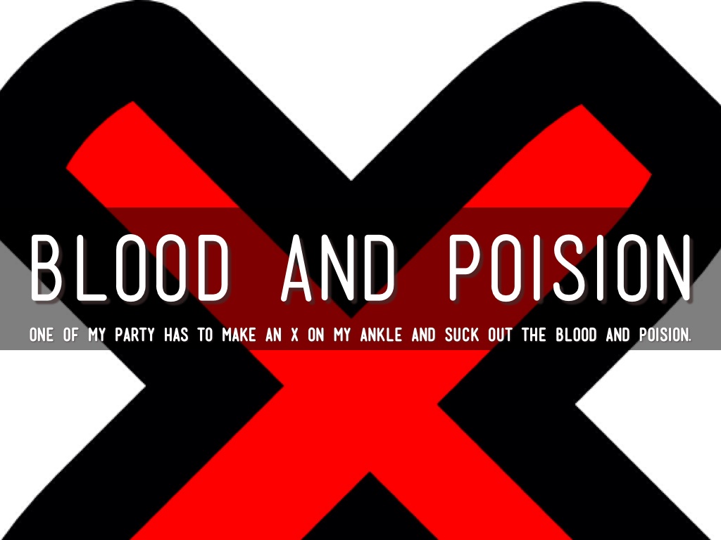 ONE OF MY PARTY HAS TO MAKE AN X ON MY ANKLE AND SUCK OUT THE BLOOD AND POISION.