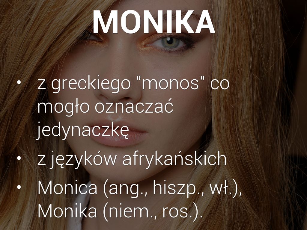 Monica (ang., hiszp., wł.), Monika (niem., ros.).