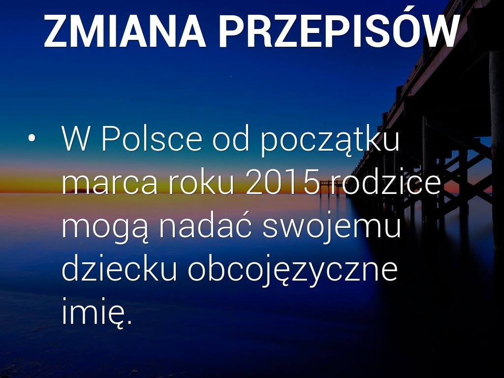 W Polsce od początku marca roku 2015 rodzice mogą nadać swojemu dziecku obcojęzyczne imię.