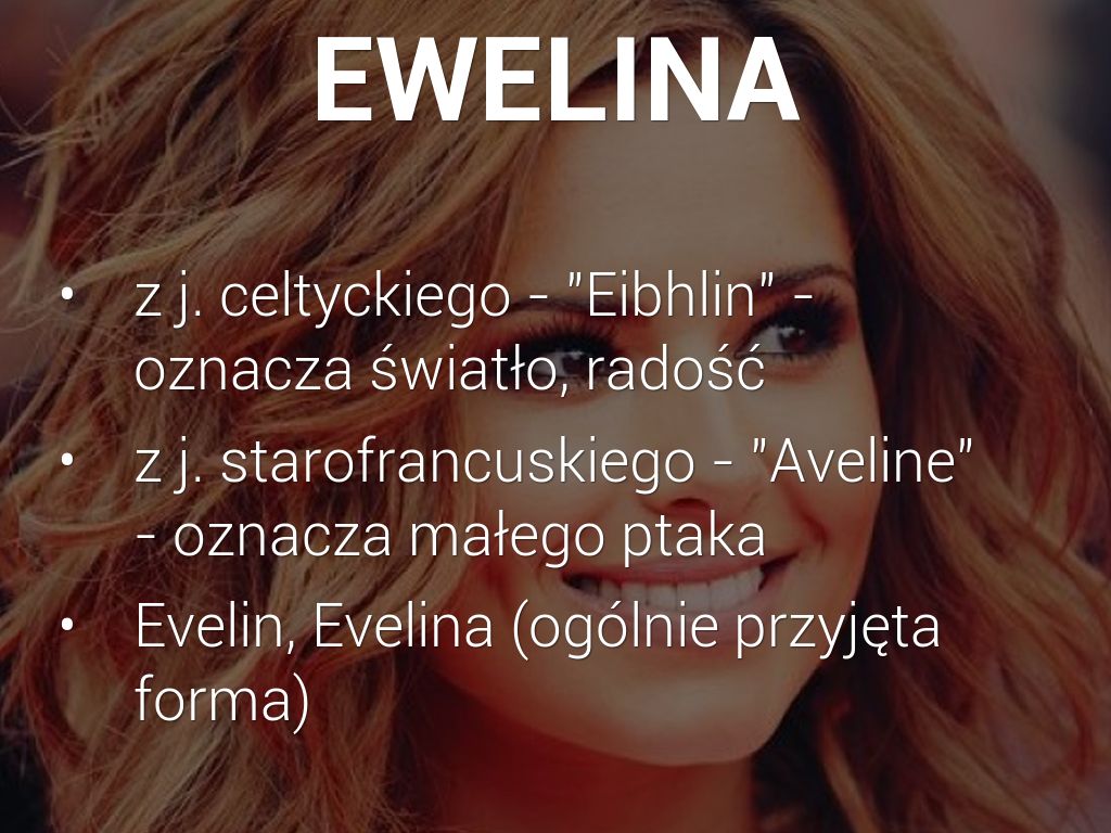 z j. celtyckiego - "Eibhlin" - oznacza światło, radość