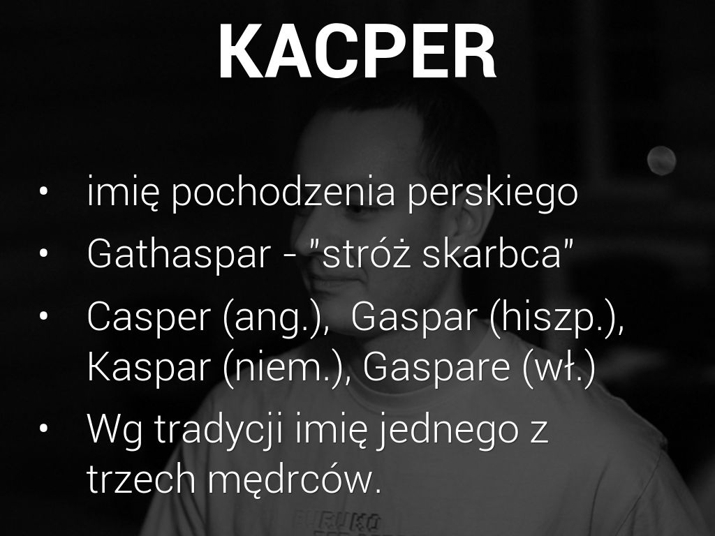 Casper (ang.), Gaspar (hiszp.), Kaspar (niem.), Gaspare (wł.)