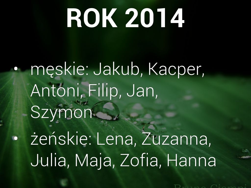 żeńskie: Lena, Zuzanna, Julia, Maja, Zofia, Hanna